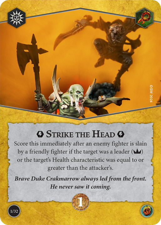 在你的對手行動步驟後立刻完成如果一個友方鬥士控制敵方領地的寶藏指示物且身上有任意數量的衝擊指示物。